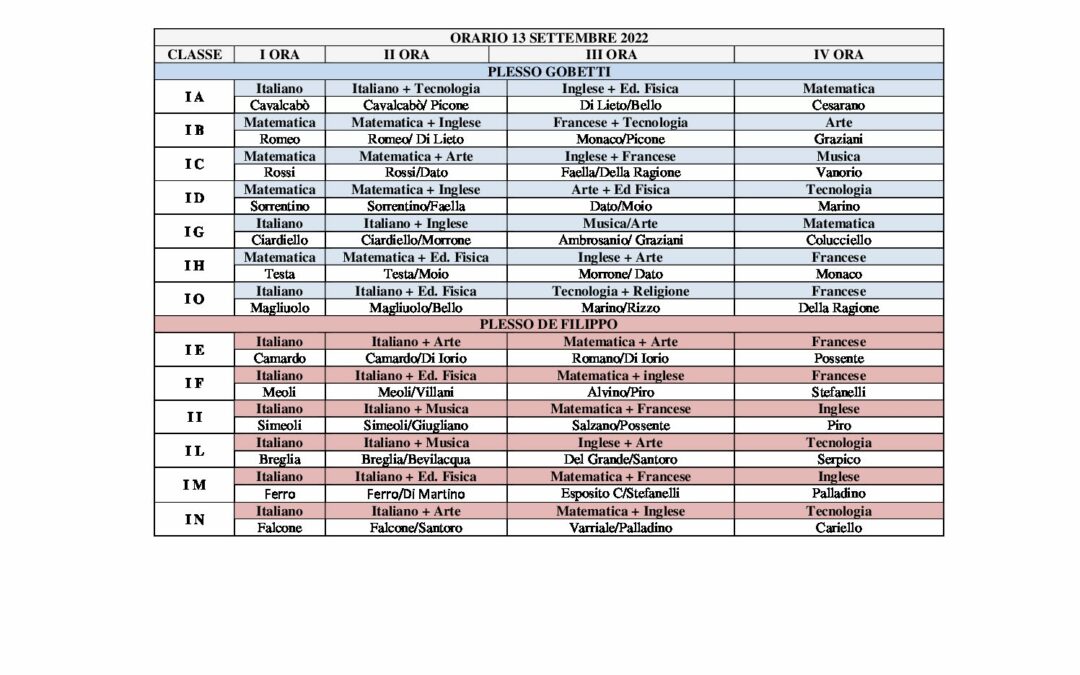 ORARIO DELLE LEZIONI – 13 settembre da NAMM0A100C | Set 8, 2022 | area ata, area docenti, area genitori, News